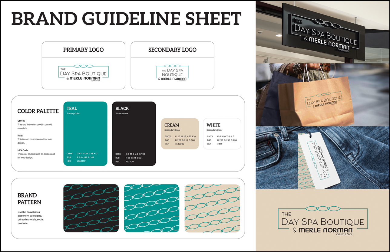 The Day Spa Boutique & Merle Norman Cosmetics is a full-service clothing boutique that provides spa services and sells cosmetics. The client wanted their logo to convey high-end and to be friendly, inviting, simple, and fresh.